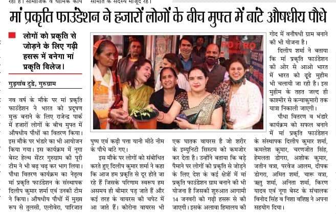 MPF distributed thousands of herbal plants in Gurugram, Haryana on the occasion of new year, 1 Jan 2021 to make India pollution free. There was a Bhandara orgnized same day where lot of people had their lunch. The team of Nuga Best Health Centre, Gurugram has taken...